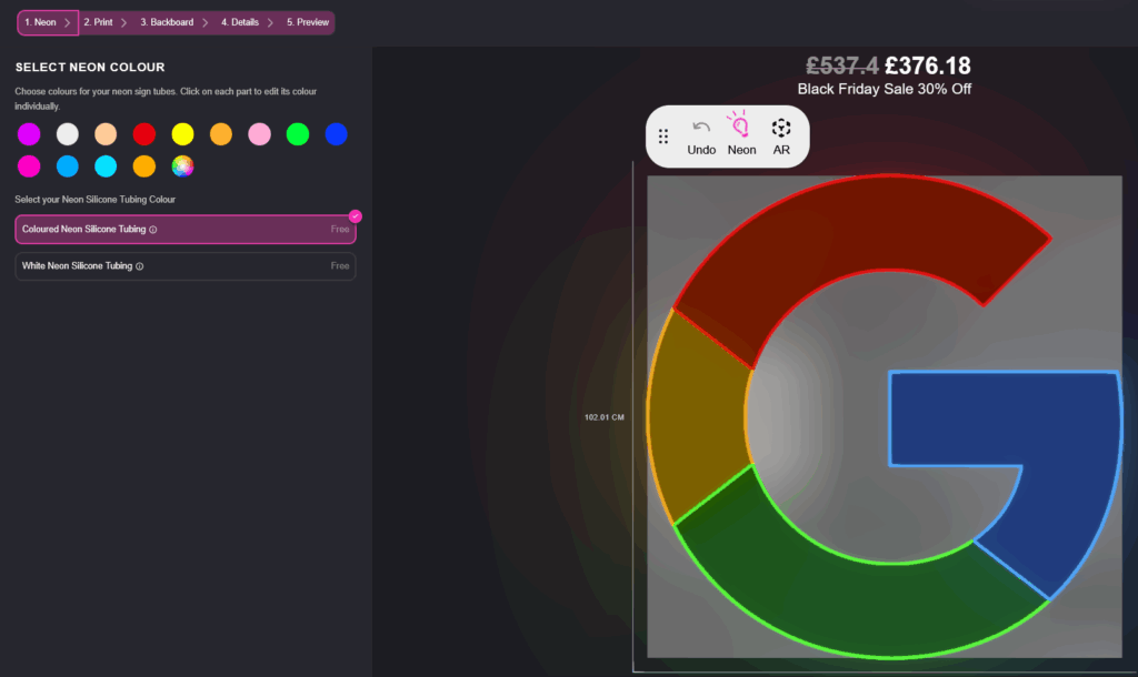 Our first version supports LED Neon Signs both text and more importantly Image/Logo to Neon.